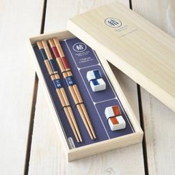 El soporte de los palillos son forma de daruma. Set con caja de madera, ideal para regalo.