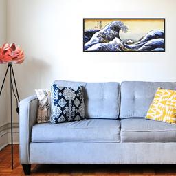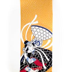 El "tenugui" es una tela tradicional japonesa muy antigua que se comenzó a utilizar desde el periodo Heian (794 D.C.-1185 D.C.). Hoy en día, se utiliza solo como toalla de mano, como envoltorio o como decoración (tapices, manteles, etc.). Se teje con algodón y su tamaño estándar es de 90 cm x 37 cm. Los extremos de la tela no se cosen para que los bordes no se ensucien y se seque rápidamente.